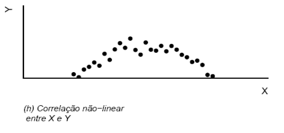 Existem limitações na correlação, como o fato dela só captar relações lineares entre as variáveis, outros padrões ela não é capaz de identificar. Abaixo, temos um gráfico entre duas variáveis X e Y, existe uma correlação entre elas, porém não linear, isso não seria captado.