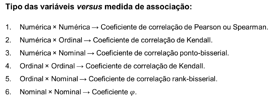 • Deve-se considerar o tipo de correlação a ser usado baseado na natureza dos dados.